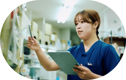 副作用モニタリングやTDM対応、医薬品情報管理など、より専門的な業務を担当。薬事委員会での活動を通じて、医療機関の薬物療法に貢献します。